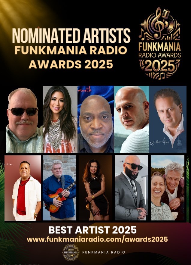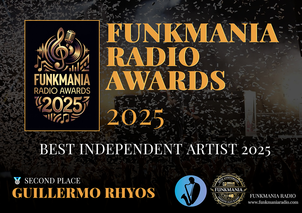 Tras una emocionante votación pública, Guillermo Rhyos se consagra en el segundo lugar de los prestigiosos Funkmania Radio Awards 2025. Con una actuación brillante y una propuesta musical cargada de funk y jazz contemporáneo, Rhyos se ganó el aclamado reconocimiento del público y el respeto de Smooth Jazz Universe Promotions. Su talento, pasión y dedicación, demostrados durante el año 2025, lo convierten en una figura clave de la escena musical, consolidándose en el podio entre los mejores creadores visionarios del año.